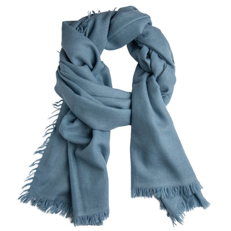 Dove blue shawl in handwoven cashmere.