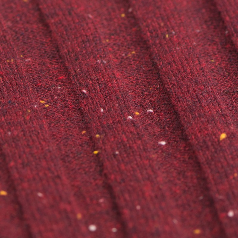 Elegant burgundy flecked rib knitted cashmere scarf.