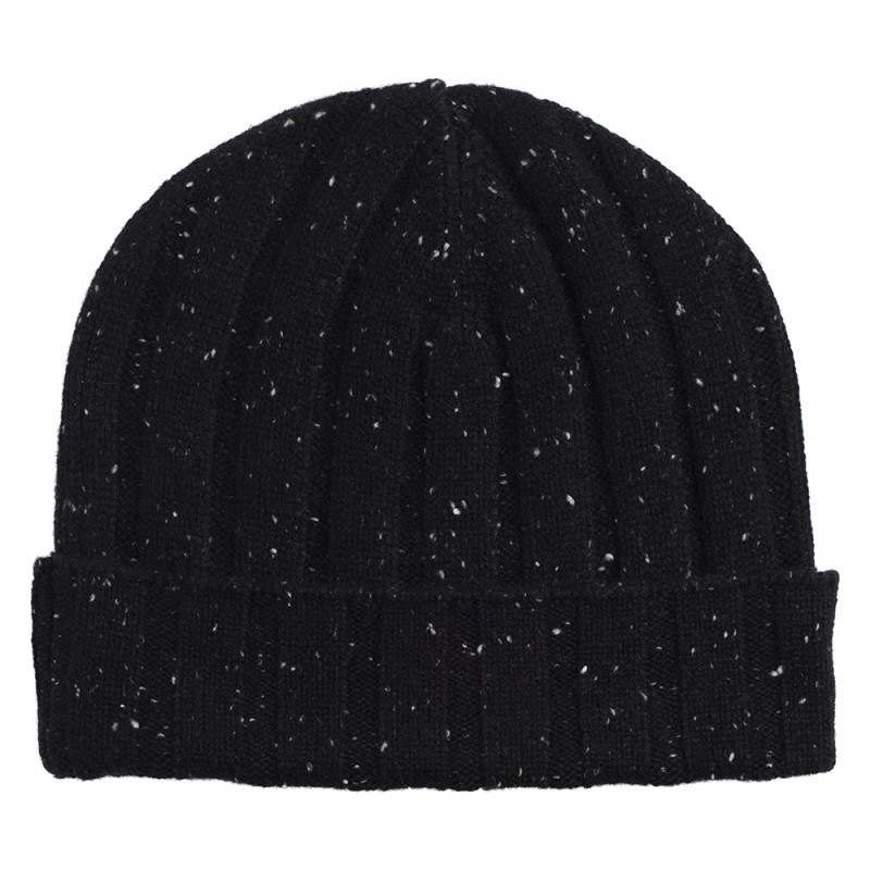 Black flecked rib knitted cashmere hat