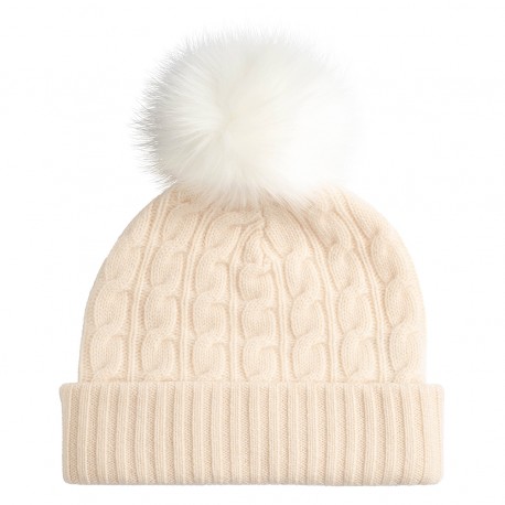 Off-white cashmere hat with pom.