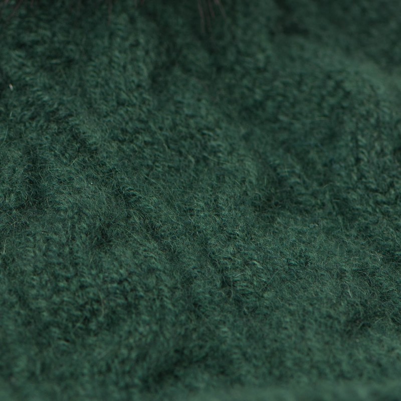 Bottle green cashmere pom hat with faux-fur ball