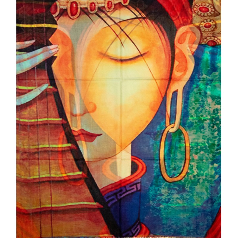 Cashmere shawl with print. 200 x 90 cm.
