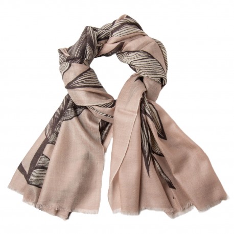 Beige cashmere shawl with gray leaf print