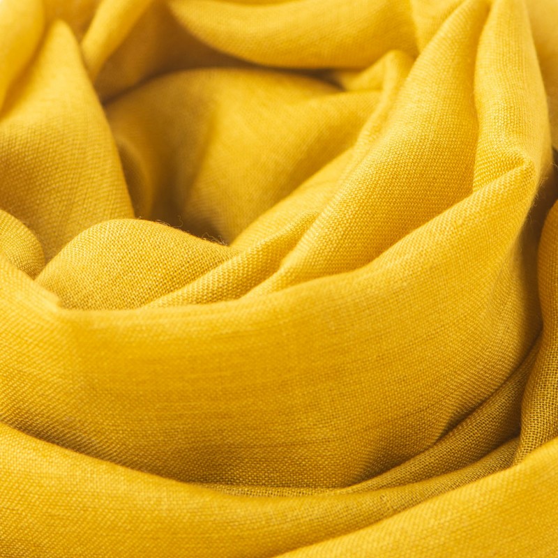 Curry yellow pashmina shawl in cashmere and silk. 200 x 90 cm.