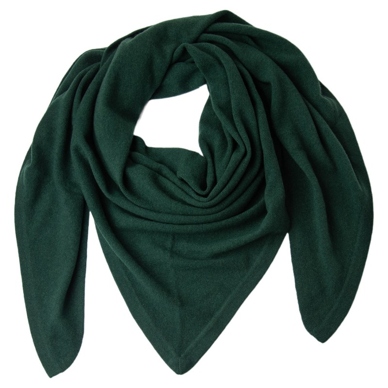 Bottle green triangular cashmere scarf. 180 x 125 x 125 cm.